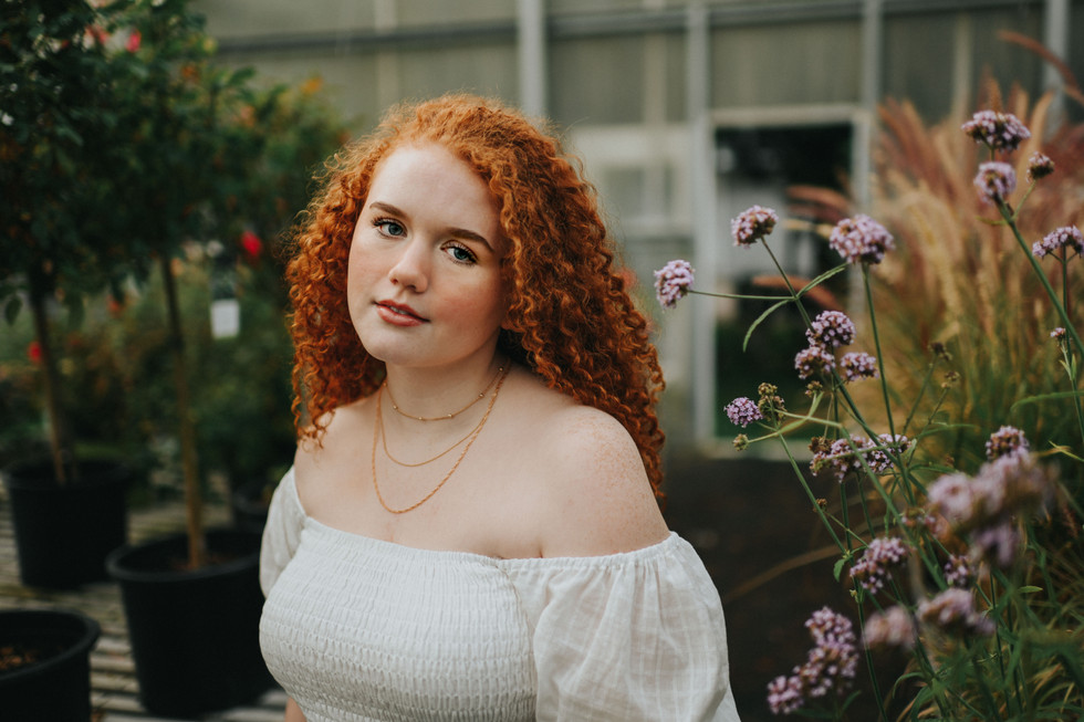 We ended Kira's senior session at a greenhouse right in Trempealeau. The pops of color throughout the greenhouse made for a gorgeous backdrop and complemented her fiery red hair perfectly.